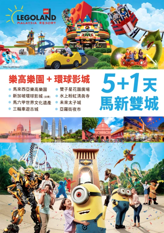 限定日期加贈環球影城門票,新加坡、馬來西亞雙樂園行程,適合全家親子出遊,一起探索新加坡和馬來西亞的絕美景點,樂高樂園、吉隆坡、馬六甲古城。同時享受豐富的文化、美食和娛樂體驗!