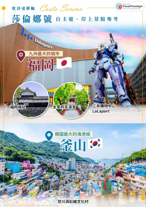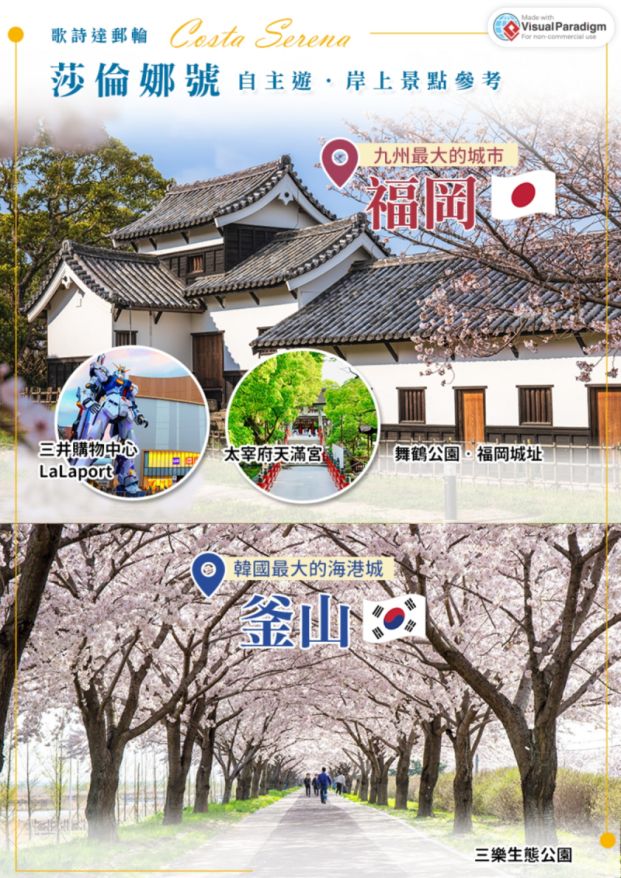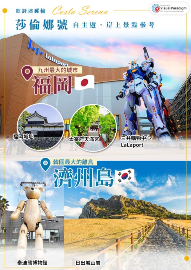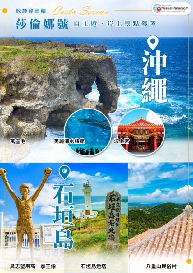 暢遊歌詩達郵輪,來去日本沖繩、韓國濟州島,豪華郵輪泳池、舞廳、賭場、劇院、健身房應有盡有。