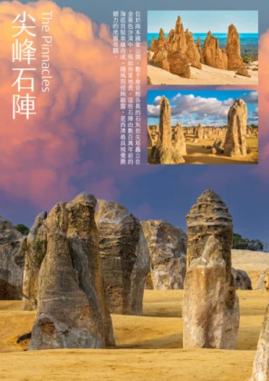 走訪 尖峰石陣國家公園 欣賞沙漠石灰岩奇景,參觀龍蝦工廠品嚐海味並造訪伯斯藍色船屋,前往 伯斯鑄幣廠 了解淘金歷史,在 凱維森野生動物園 近距離接觸澳洲動物,探訪波浪岩地質奇觀,最後漫遊 天鵝谷 酒莊品酒放鬆