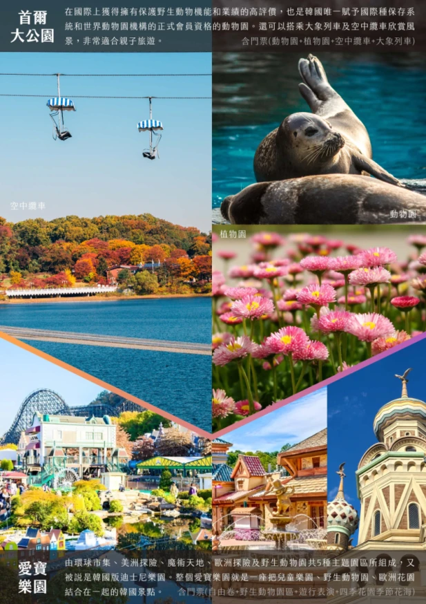 限定日期升等龍蝦套餐,韓國首爾親子遊首選;暢玩結合兒童樂園&野生動物園&歐洲花園的愛寶樂園,擁有自然美景&娛樂空間的首爾大公園,以及特麗愛3D美術館體驗超真實立體感畫作。