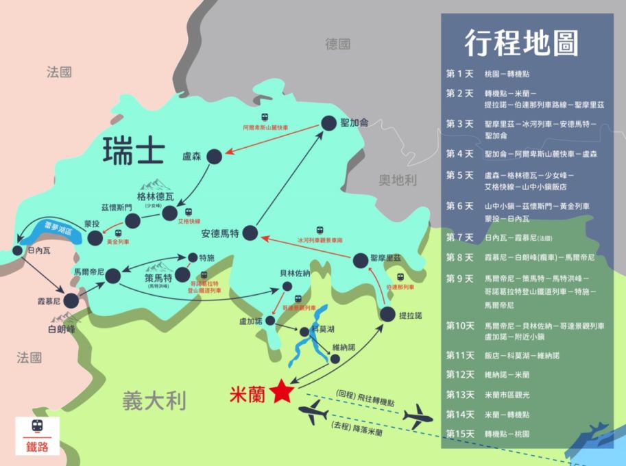 ❣️以下為參考行程,此行程有米蘭、法蘭克福、日內瓦、布達佩斯多個進出點